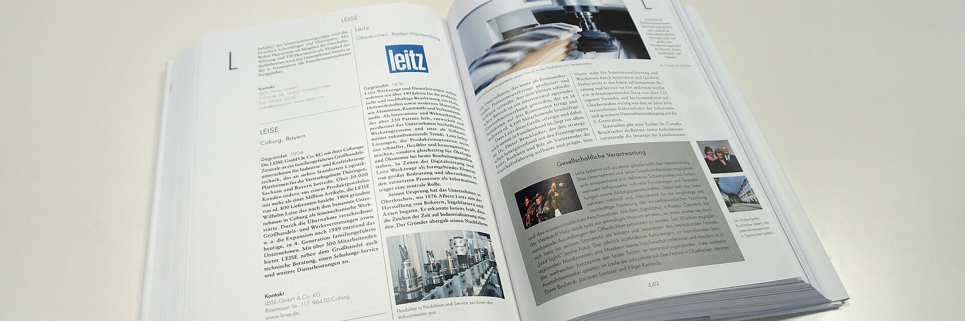 这本关于德国家族企业的出版物已经成为标准著作,现在是新修订的第三版,出版商是位于汉堡和柏林的Zeit-Verlag。和公司相关的数据和概况都以不同长度的字母排序按条呈现,图形提供对公司关键数据的概括,特殊图形元素代表了有关里程碑、社会承诺或企业管理可持续性等方面的信息。百科全书目录以照片系列为补充,登记册是根据家族企业的成立年份和地理位置进行排列。